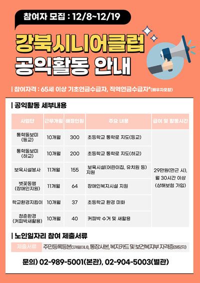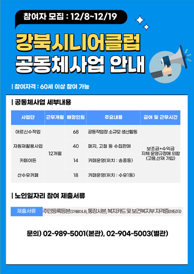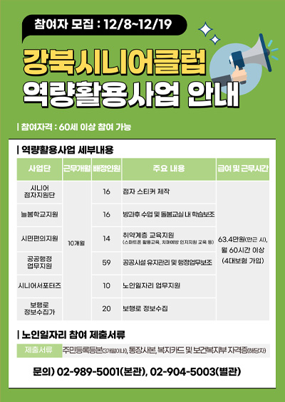 2025년 강북시니어클럽 직원(노인일자리담당자) 채용 최종 합격자 발표