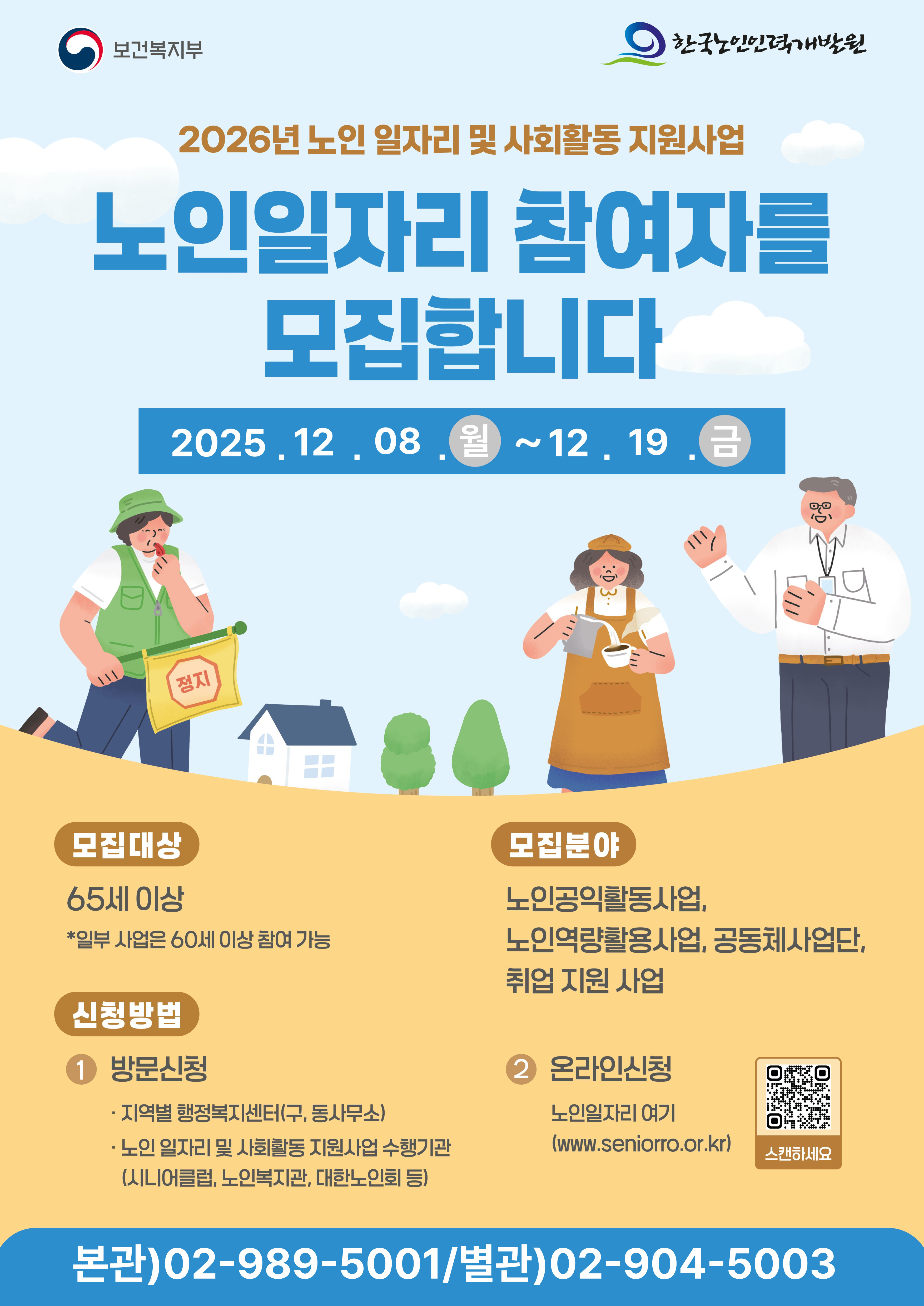 취약계층 지원 및 지역사회 공익증진 활동을 통해 소득을 보전할 수 있는 일자리 입니다.